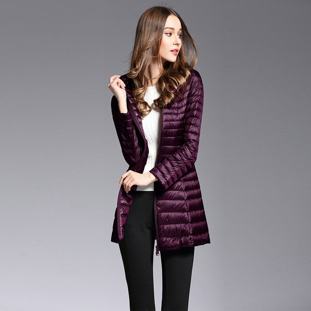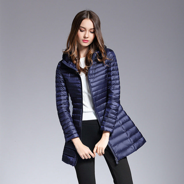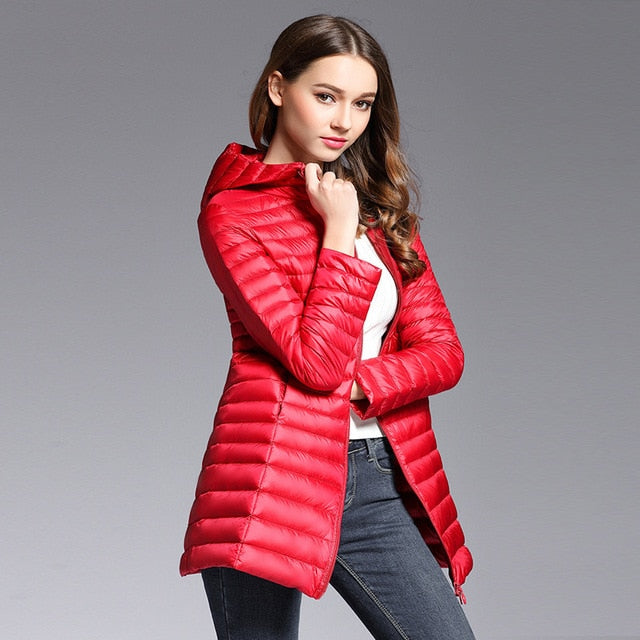 90% White Duck Down Coat Women Ultra Light Down Jackets 2018 winter New Women Long Down Coat Parka with Hood